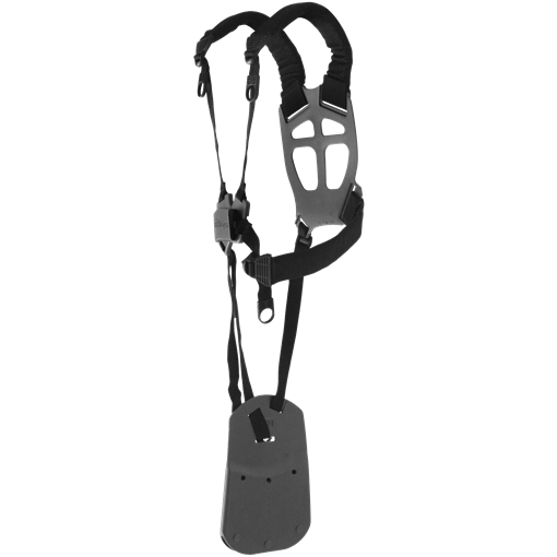 Эргономичная ременная оснастка, которая оптимальным образом распределяет нагрузку между плечами, грудной клеткой и спиной. Широкие плечевые ремни с мягкими накладками и широкая спинная пластина дополнительно снижают нагрузку на тело пользователя. Оснащена опорной пластиной, минимизирующей воздействие инструмента на тело оператора (т.е. инструмент не "бьется" о тело оператора, не цепляется и т.п.). Система оснастки с опорной пластиной позволяет управлять инструментом с легкостью и меньшим количеством движений, что благоприятным образом сказывается на состоянии позвоночника пользователя.