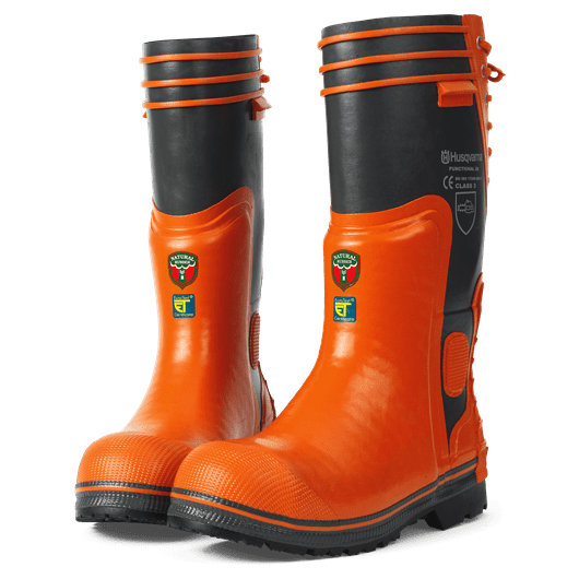Сапоги с защитой от порезов бензопилой. Дополнительные усиливающие вставки в области мысков и вокруг лодыжек. Новая конструкция пятки и шнуровка на задней части сапог позволяют с легкостью снимать и надевать сапоги. Внутренняя отделка из ткани. Подошва готова к установке шипов.