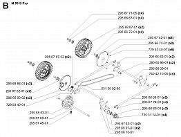 4 КОЛЕСА, РЕМЕНЬ, РЕДУКТОР Газонокосилка Хускварна M53 S PRO, 953534801, 2004-06